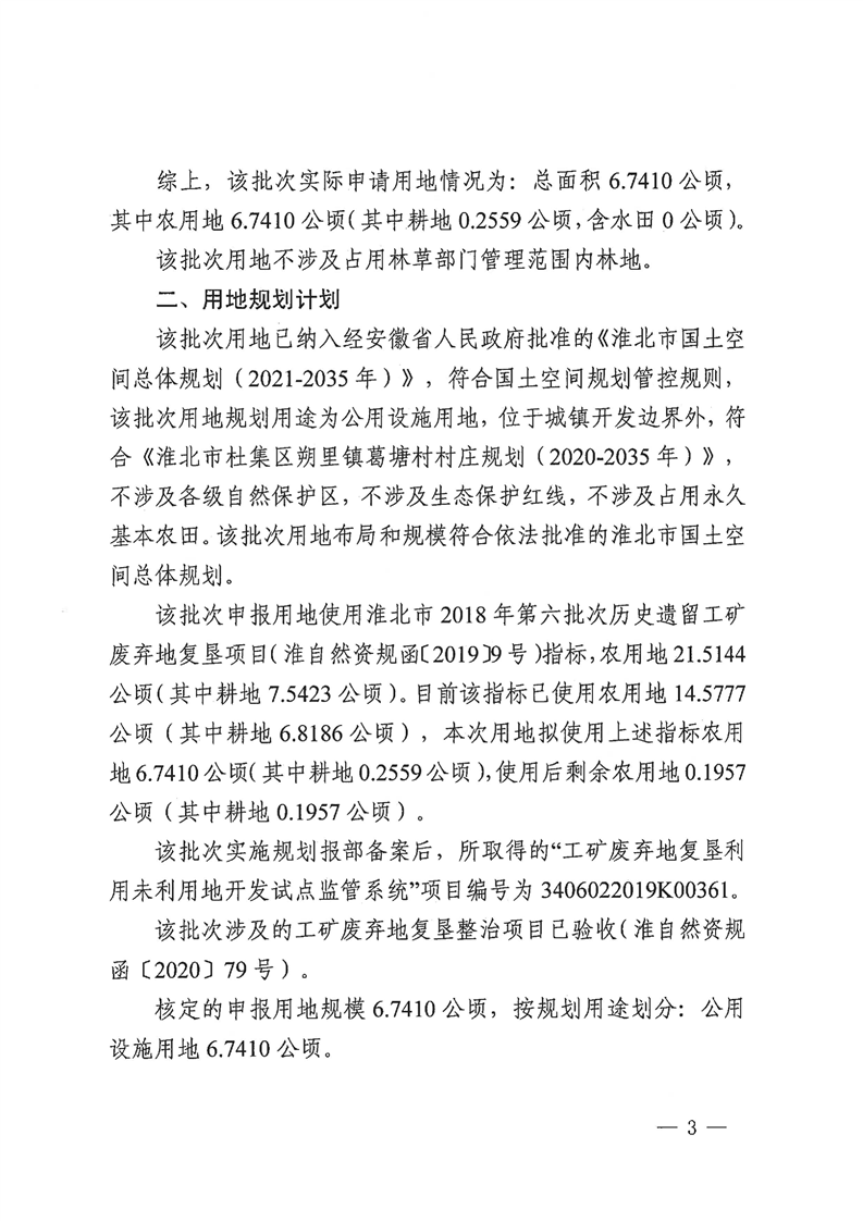關(guān)于淮北市杜集區(qū)2024年第4批次(工礦廢棄地復(fù)墾掛鉤)村莊建設(shè)用地的審查報告