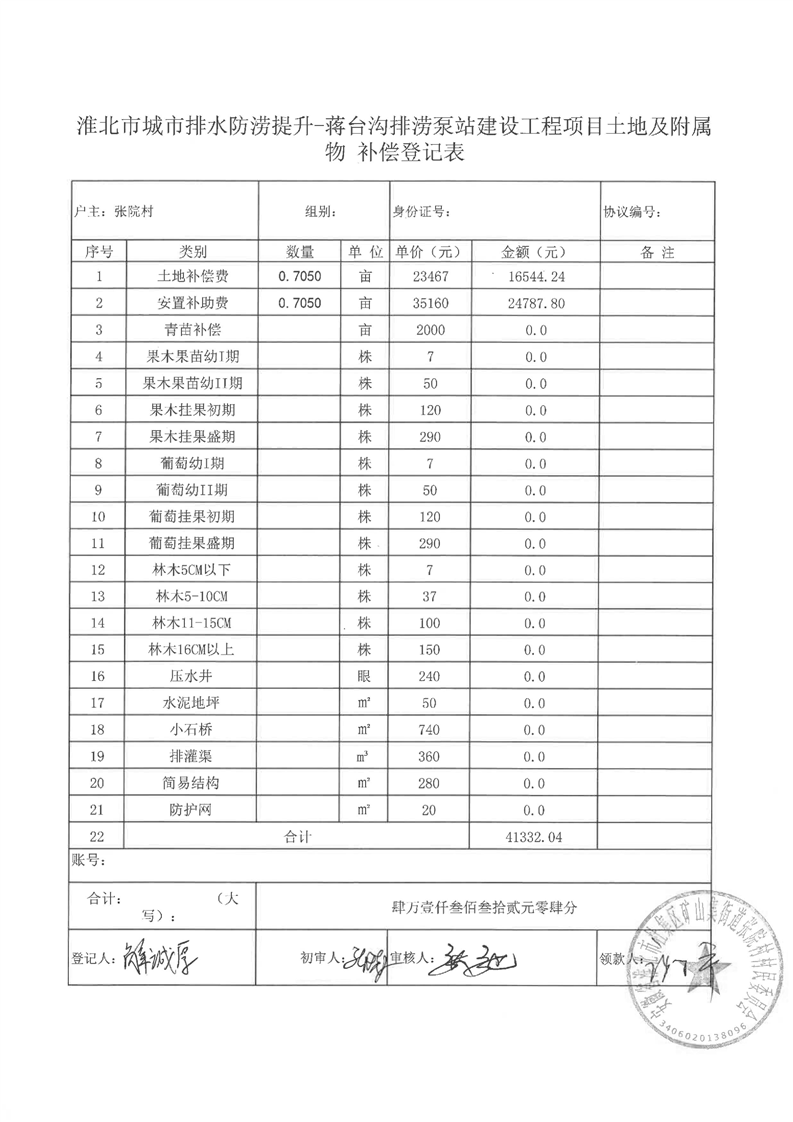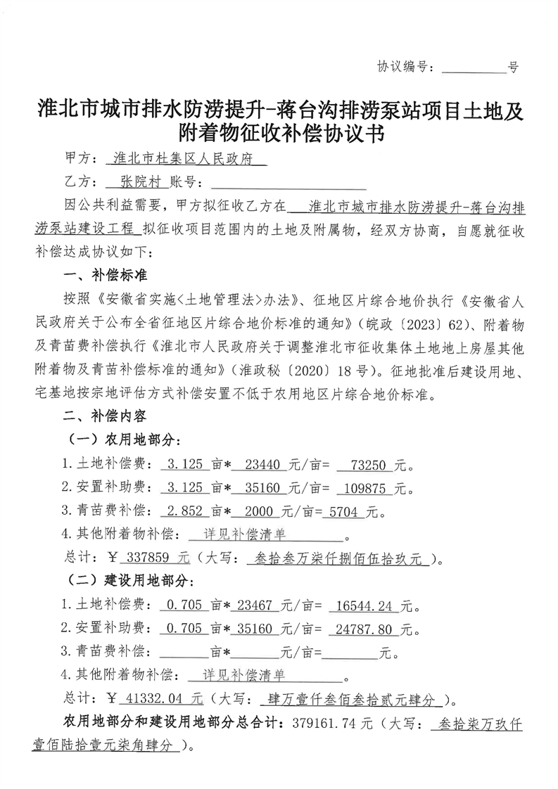 淮北市城市排水防澇提升-蔣臺溝排澇泵站項目土地及附著物征收補償協(xié)議書