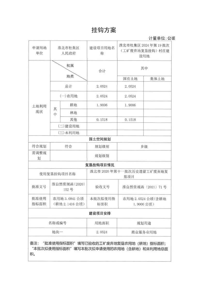 淮北市杜集區(qū)2024年第19批次(工礦廢棄地復(fù)墾掛鉤)村莊建設(shè)用地呈報掛鉤方案