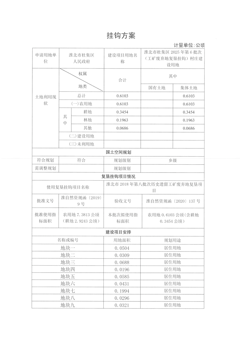 關于淮北市杜集區(qū)2025年第6批次(工礦廢棄地復墾掛鉤)村莊建設用地的掛鉤方案